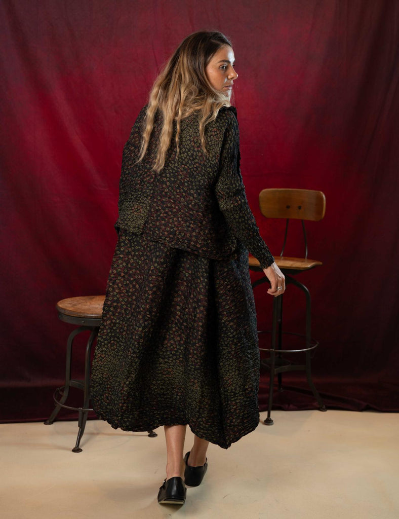 La particolare tecnica di lavorazione mantiene la forma nel tempo e permette di riporre o lavare il capo senza necessità di stiratura — un tratto distintivo della sperimentazione tessile giapponese.